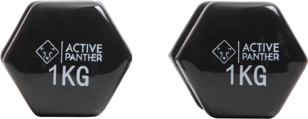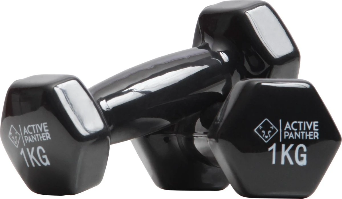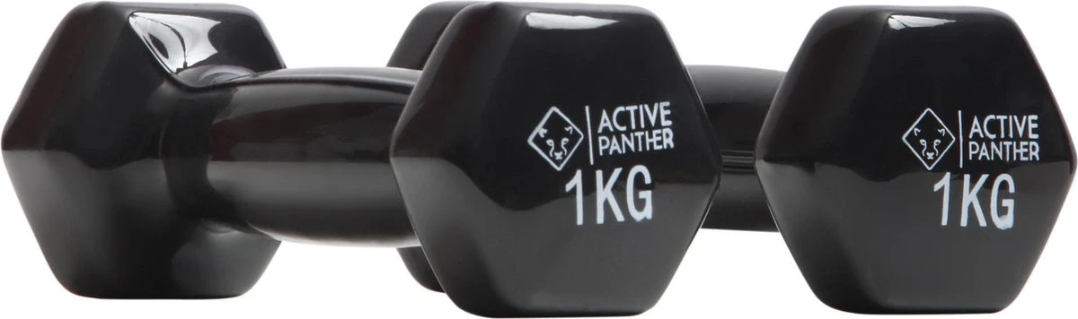 De voordelen van de Active Panther dumbbells – 2 x 1 kg, 2 kg totaal, Vinyl zwart.