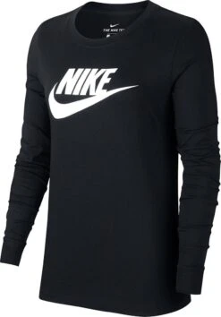 NIKE Sportswear Essential Icon Futura Lange Mouwenshirt Vrouwen Zwart – Maat S