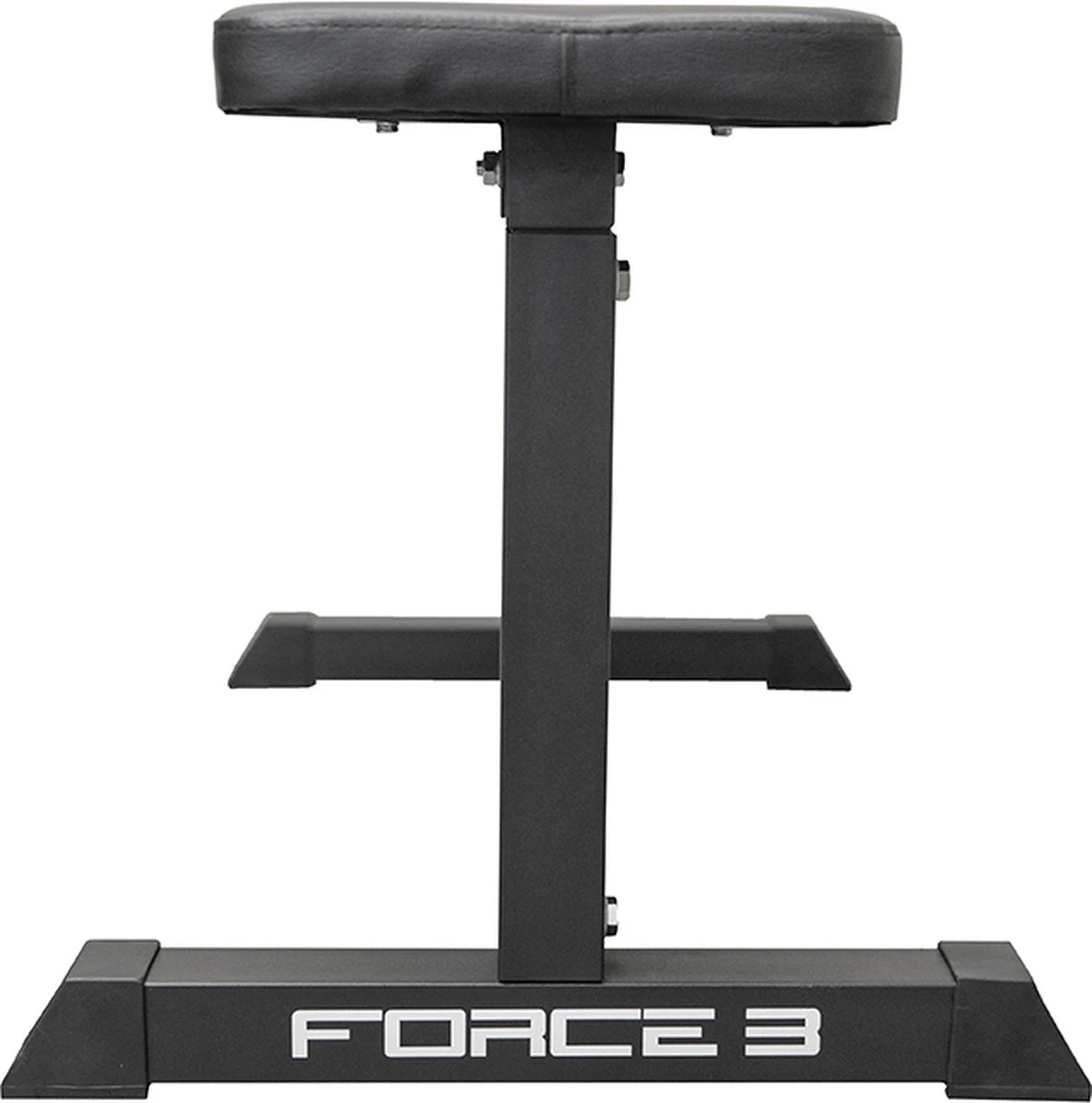 Het frame van de Force 3 trainingsbank is gemaakt van staal en is geschikt om te belasten tot 120 kg. Perfect voor de beginnende thuissporter die wil starten met krachttraining! De poten zijn afgewerkt met rubber antislip materiaal zodat deze bank op zijn plek blijft staan. Daarnaast zorgt deze afwerking voor een betere demping en wordt de vloer beschermd. Door zijn lichte gewicht van 12 kg kun je de trainingsbank makkelijk verplaatsen of opbergen na je training. Het zitvlak en ligvlak bestaan uit comfortabele kussens die een goede ondersteuning bieden tijdens het trainen. Je kunt hierdoor zowel liggende als zittende oefeningen uitvoeren. Het kussen van de bank heeft een breedte van 31 cm met een lengte van 99 cm.