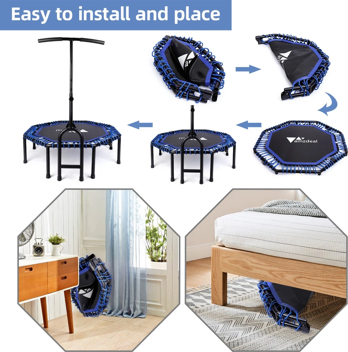 De Fitness trampoline is geschikt voor zowel beginners als ervaren gebruikers. De beugel met het handvat is eenvoudig verstelbaar in 3 verschillende standen, zodat je het handvat in iedere gewenste hoogte kan instellen. Ben je een beginner? Gebruik het verstelbare handvat dan voor stabiliteit en ondersteuning. Ben je een ervaren gebruiker? Dan is het handvat ideaal voor geavanceerde workouts!
