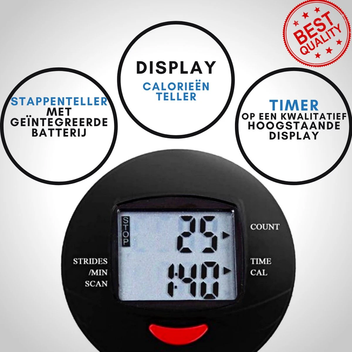 De display is super handig en laat je precies zien hoeveel stappen je gemaakt hebt. Ook laat het zien hoelang je bezig bent en zo kan je een goed ritme opstellen. Daarnaast kan je natuurlijk ook zien hoeveel calorien je al verbrand hebt. De calorien worden natuurlijk gemeten aan de hand van het aantal stappen.
