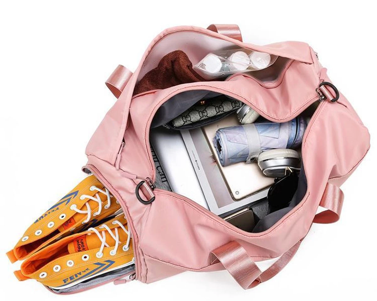 Ben jij opzoek naar een stijlvolle / functionele sporttas? Deze in het roze uitgevoerde dames sporttas is geschikt voor alle sporten. Met een ruime inhoud van 25 Liter kan jij al je spullen erin kwijt en ben je voorbereid voor jouw volgende workout. Zo heb je aan de bovenzijde twee waterdichte vakken om gebruikte en schone kleding te scheiden en een apart ademend schoencompartiment. Bestel vandaag nog jouw duffelbag en haal het beste uit jouw sport.