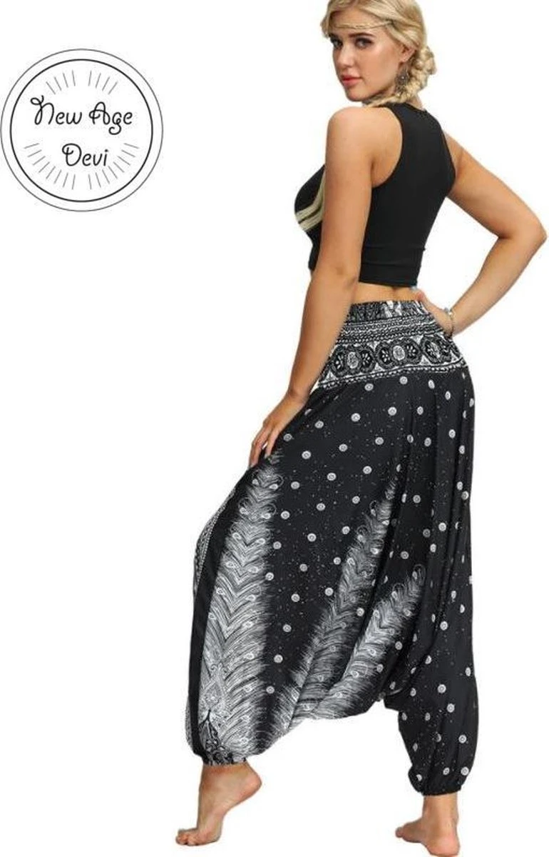 Comfortabele luchtige lounge harem broek. Zwart Wit Fractal Print Maat M