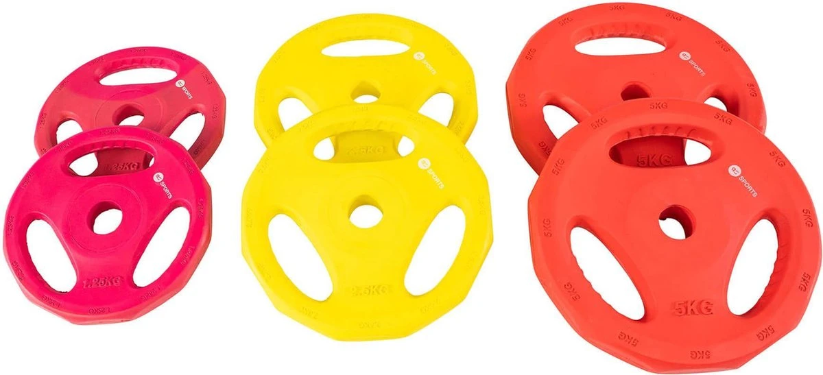Schijven zijn te verkrijgen in verschillende gewichten en kleuren