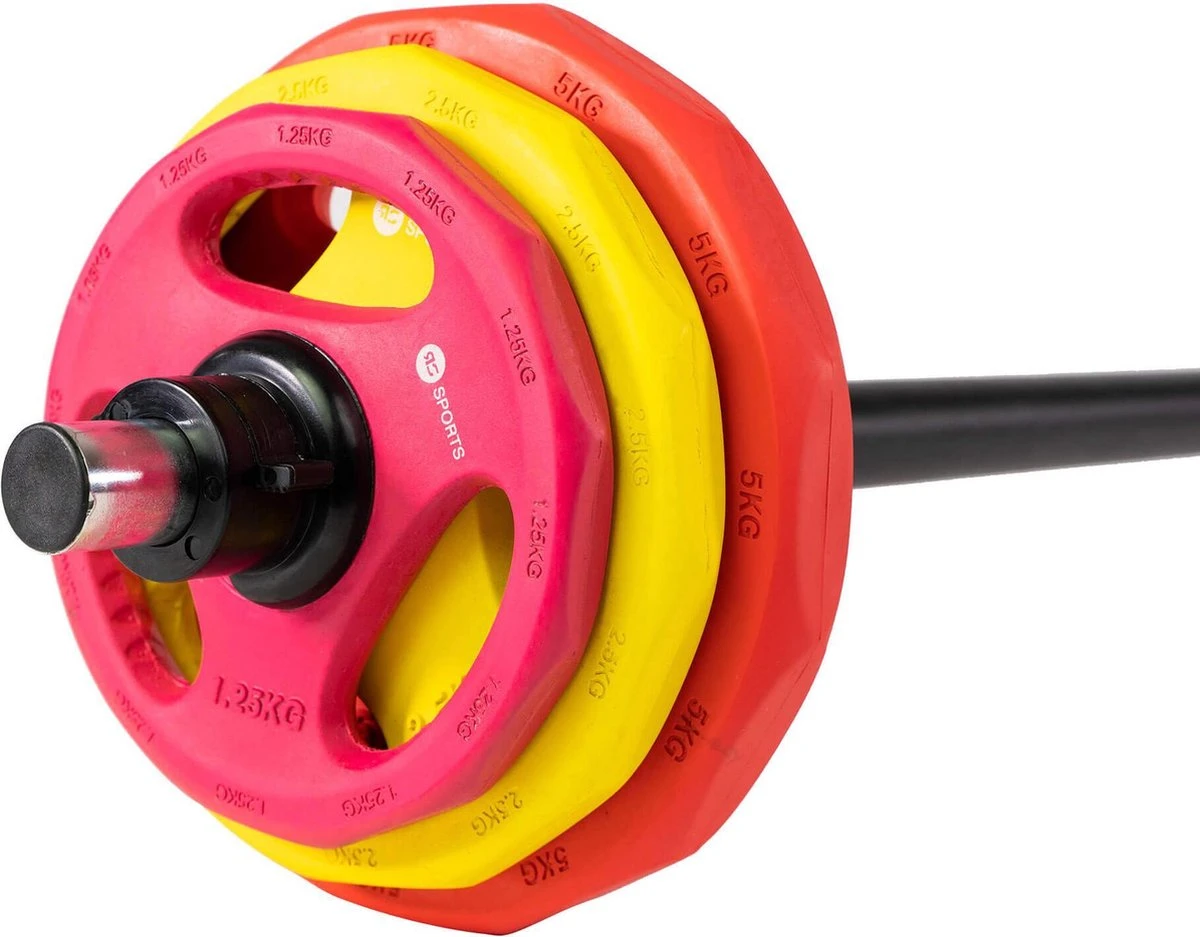De RS Sports Aerobic Pumpstang inclusief sluiters. De stang is hol en daardoor geschikt voor zwaardere aerobic (pump) training.