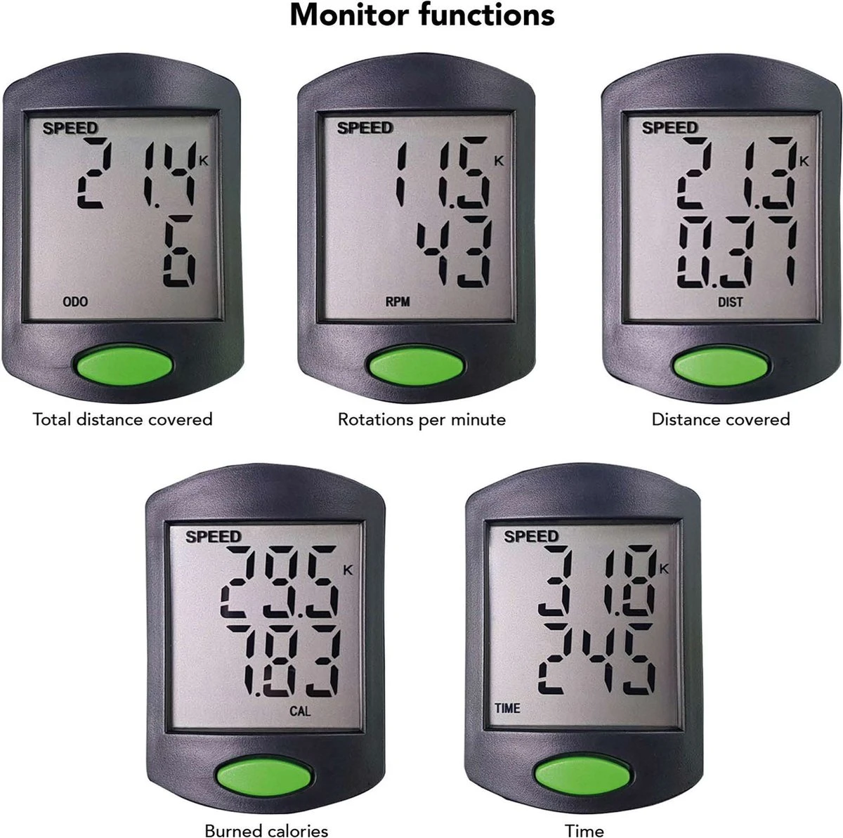 Train niet alleen je benen, maar ook je armen. Plaats het toestel op een tafel en maak van de pedalen handvaten met stevige grip. Je stelt de weerstand in op het gewenste niveau en de ingebouwde computer geeft de snelheid, de trainingstijd, het geschatte aantal calorieën en het aantal omwentelingen per minuut weer. De M35 mini bike stopt in alle veiligheid met het magnetisch remsysteem (PMS manual brake system).