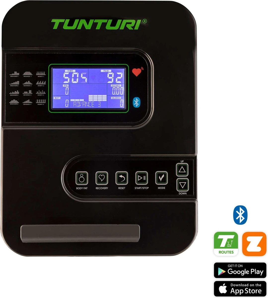 De app is gratis te downloaden in de App Store en Play Store en eenvoudig te verbinden met je Tunturi trainer.