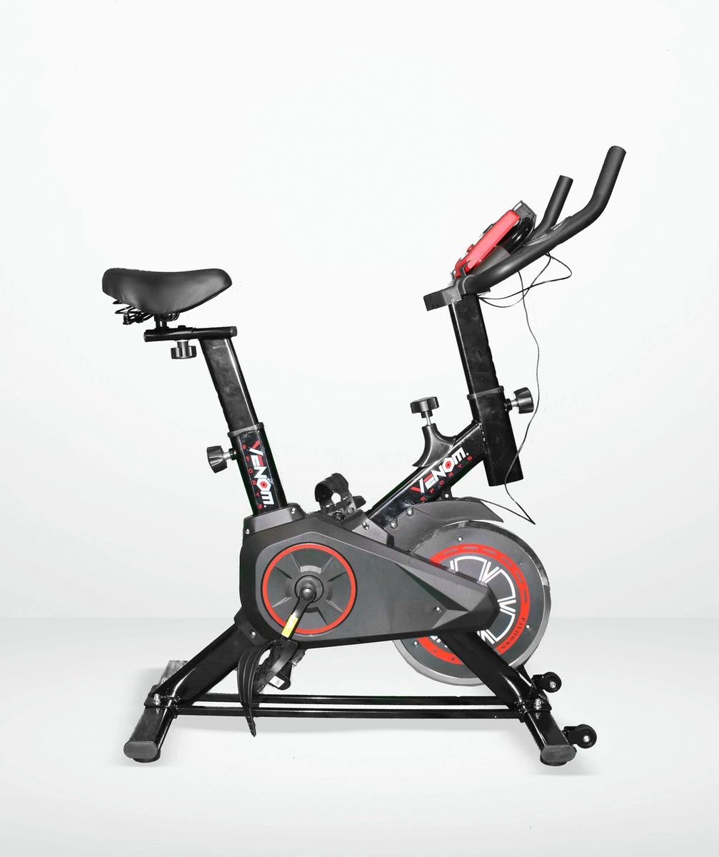 De hometrainers van het merk Venom Sports zijn speciaal ontworpen om extra stabiliteit en comfort te garanderen tijdens het trainen. Deze spinningfiets is geruisloos dankzij de V-belt aandrijving en heeft een draagvermogen tot 150 kg. De hometrainer fiets is niet alleen super gebruiksvriendelijk, stabiel en comfortabel, maar oogt ook mooi dankzij het luxe design. Deze hometrainer is voorzien van een LCD scherm waarop u uw snelheid, inspanningstijd, afstand, calorieën verbranding en hartslag kunt bijhouden tijdens het trainen. Hierdoor kunt u uw voortgang eenvoudig monitoren!