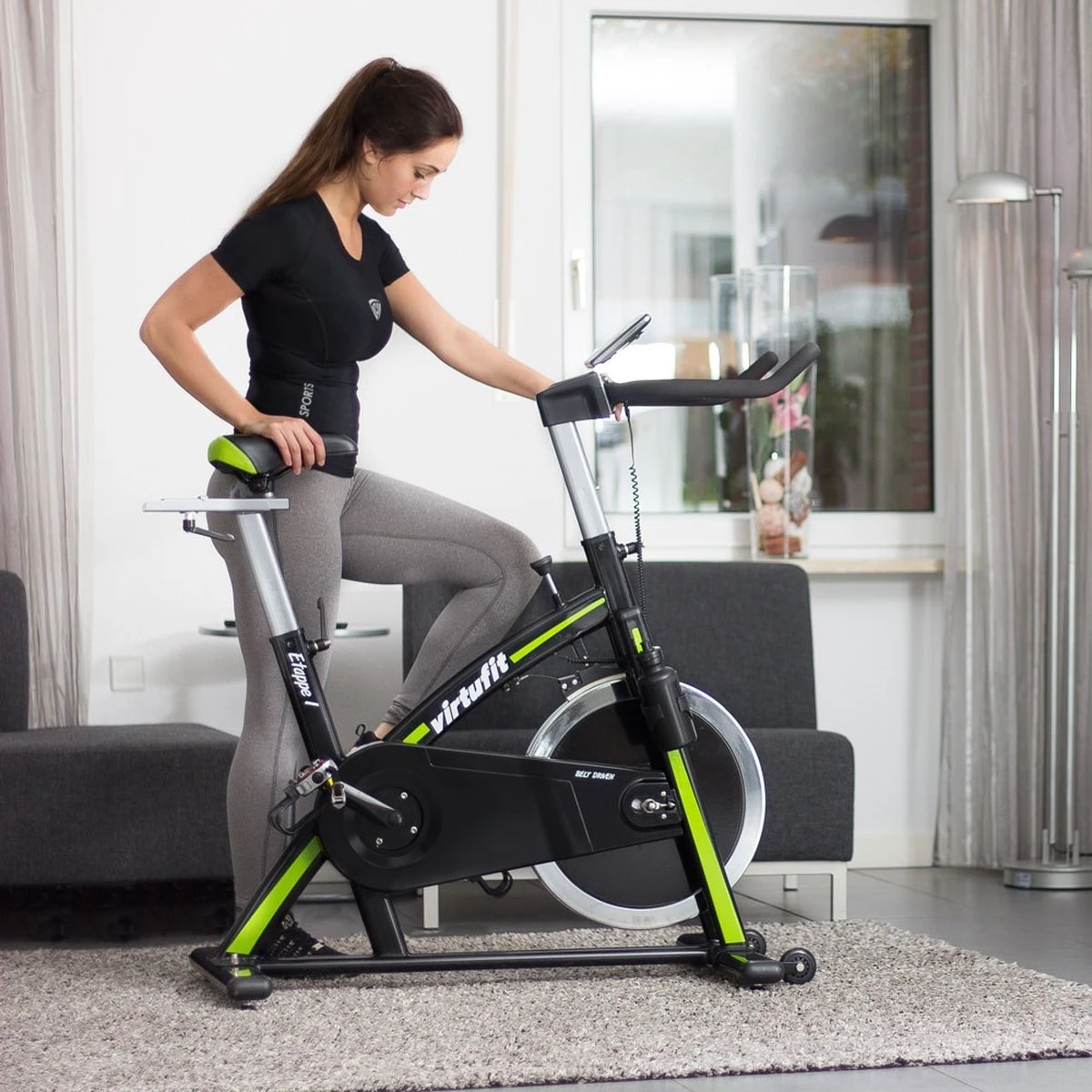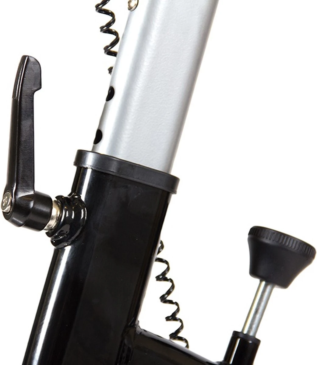 Maar ook voor rustigere oefeningen is de VirtuFit Etappe 1 een goede keuze. Deze indoorfiets fietst namelijk gewoon lekker. Dat komt onder andere doordat alle draaipunten zijn voorzien van industriele lagers om een soepele beweging te garanderen. En de V-belt aandrijving voor een stille en vloeiende beweging van het vliegwiel zorgt. Het komt ook doordat je altijd een goede sporthouding kan vinden op deze indoorfiets. Hij heeft een wielrennerszadel dat je gemakkelijk horizontaal verstelt. Met een extra lange zadelstang voor lange mensen. En een stuur dat je gemakkelijk hoger of lager zet. Hiermee pas je de Etappe 1 gemakkelijk aan op je eigen lichaamslengte. Zowel het stuur als het zadel verstel je met een “L-Bolt”; een L vormige schroef hendel die nooit los kan schieten tijdens je oefening, hoe wild je ook met de indoorfiets om gaat. Dat is 100% veiligheid, en zeker niet vanzelfsprekend in deze prijsklasse.