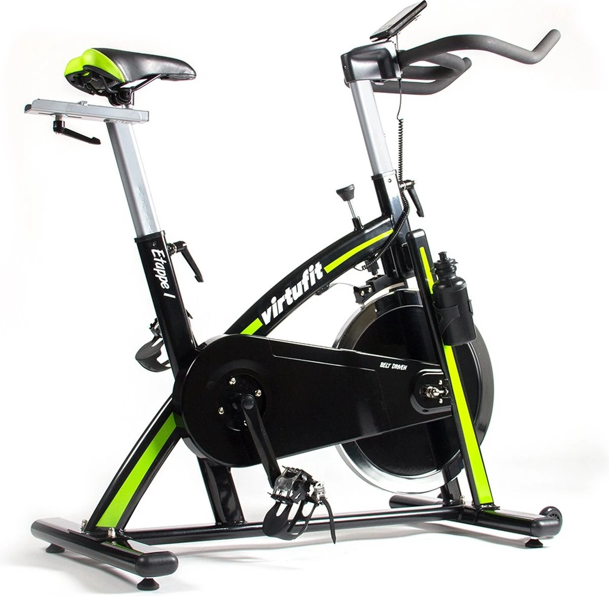 Wil je een keer voor de televisie fietsen, dan verplaats je deze indoorfiets gemakkelijk met transportwielen. En je kunt hem daarna gemakkelijk waterpas stellen, zodat ook scheve vloeren geen afbreuk aan je oefening doen. Als je dorst hebt, hoef je het niet meer te onderbreken. Op de VirtuFit Etappe 1 zit een bidon houder, en je krijgt de bidon er bij.